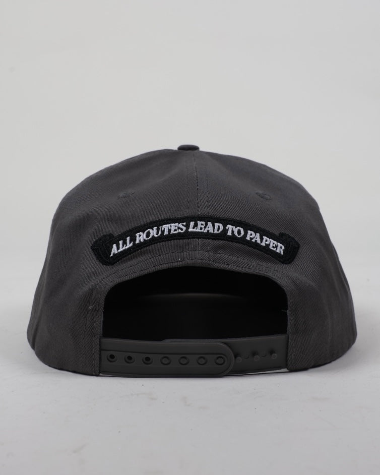 Top off your look with the Paper Route Grey Trucker Hat, where detail meets everyday wear. Designed in a clean grey tone, this trucker hat features a bold 3D stitched Paper Route logo at the centre front for standout depth and texture. On the left side, a 2D stitched PR Duck logo adds a subtle branded touch, while the back is finished with our signature “ALL ROUTES LEAD TO PAPER” patch, placed just above the adjustable strap.
